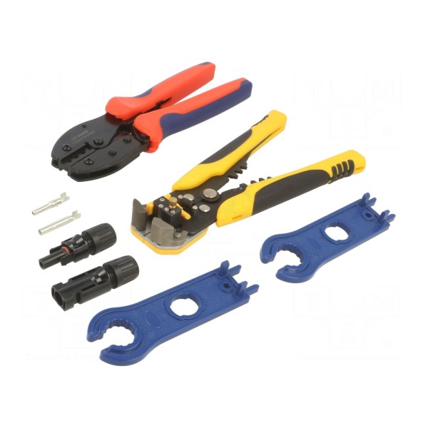 Zestaw narzędzi przeznaczony jest do wykonywania prac montażowych w instalacjach fotowoltaicznych. Komplet dedykowany jest dla elektryków i umożliwia obsługę złączy solarnych typu MC4.