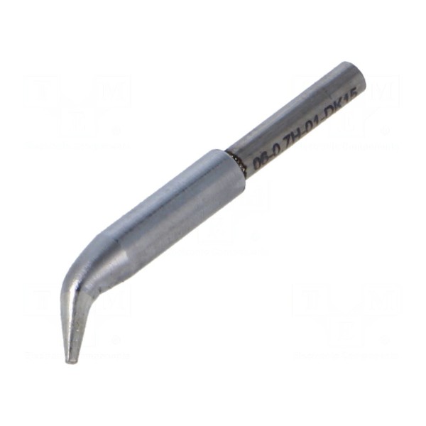 Grot lutowniczy typu zagięty wkrętak o wymiarach końcówki 0,7x0,4mm przeznaczony jest do wykorzystania z gorącymi szczypcami. Element ten wyposażony został w zintegrowaną grzałkę, co wpływa na sposób przekazywania energii cieplnej w procesie lutowania.