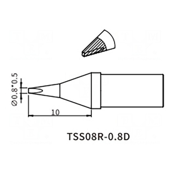 Grot przeznaczony do stosowania w lutownicach grzałkowych. Element posiada kształt wkrętaka o wymiarze końcówki 0,8 mm.