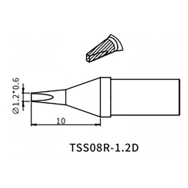 Grot o kształcie wkrętaka przeznaczony jest do lutownic grzałkowych marki QUICK. Element posiada wymiar roboczy wynoszący 1,2mm, co umożliwia precyzyjne prowadzenie spoiwa podczas prac montażowych oraz naprawczych.
