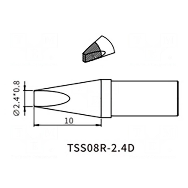 Grot przeznaczony jest do współpracy z lutownicami grzałkowymi typu QUICK-TS8. Element charakteryzuje się kształtem wkrętakowym oraz wymiarem końcówki wynoszącym 2,4mm.