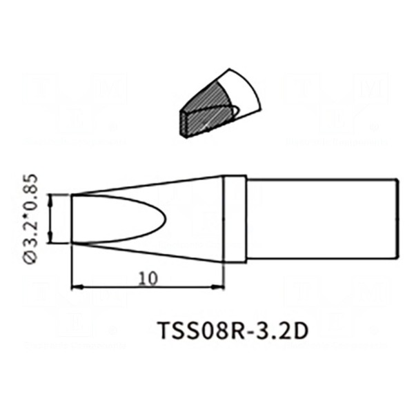 Grot przeznaczony do lutownic grzałkowych o kształcie końcówki typu wkrętak. Element charakteryzuje się wymiarem 3,2mm.