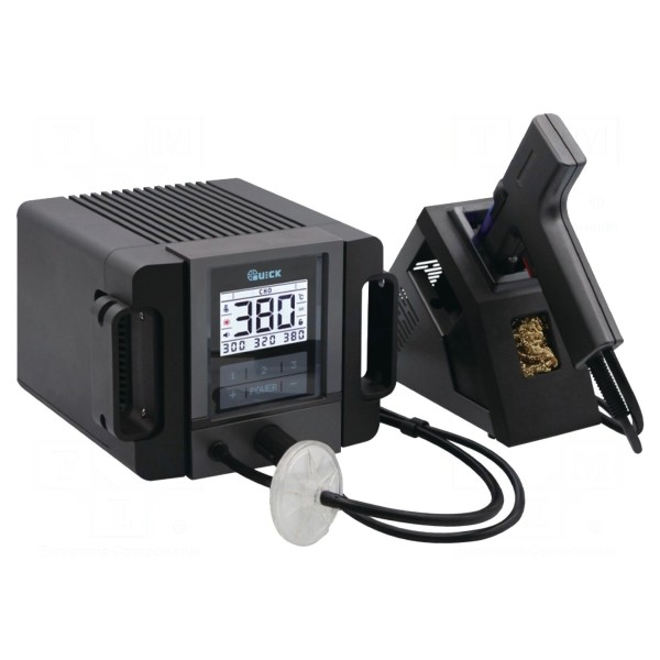 Stacja rozlutowująca QUICK TV2 to urządzenie o mocy 200W, przeznaczone do usuwania spoiwa lutowniczego metodą odsysania cyny. Sprzęt obsługuje zakres temperatur od 300°C do 500°C i jest przystosowany do pracy w technologii bezołowiowej. Urządzenie wyposażono we wbudowaną pompę ssącą oraz cyfrowy panel dotykowy, który umożliwia sterowanie parametrami pracy.