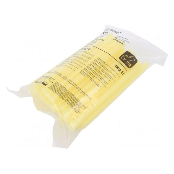 Klej termotopliwy o średnicy 12mm oraz długości 190mm przeznaczony jest do łączenia różnych materiałów, takich jak drewno, plastik oraz szkło. Znajduje również zastosowanie podczas mocowania przewodów. Produkt charakteryzuje się czasem wiązania wynoszącym 30 sekund.