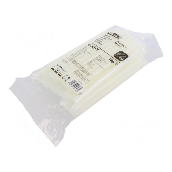 Klej termotopliwy o średnicy 12mm oraz długości 190mm charakteryzuje się czasem wiązania wynoszącym 30 sekund. Produkt przeznaczony jest do pracy w zakresie temperatur od 160°C do 200°C, a temperatura jego mięknięcia mieści się w przedziale 81–84°C.