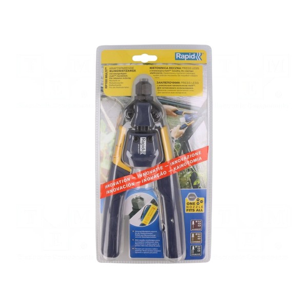 Nitownica ręczna RAPID RP100 jest narzędziem przeznaczonym do obsługi nitów zrywalnych o średnicach od 3,2 mm do 4,8 mm. Konstrukcja narzędzia umożliwia pracę z nitami wykonanymi zarówno z aluminium, jak i stali.
