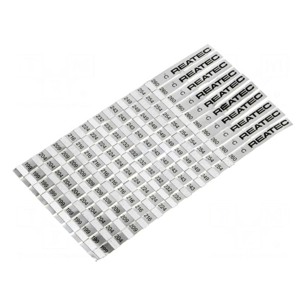 Wskaźnik temperatury REATEC TEMP-INDICATOR/H to preparat przeznaczony do monitorowania zakresu temperaturowego od 199°C do 260°C. Urządzenie charakteryzuje się dokładnością pomiaru na poziomie ±1% oraz rozdzielczością wskazań w przedziale od 5°C do 8°C.