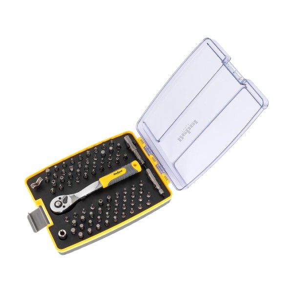 W skład kompletu wchodzą bity typu Torx, Posidriv, Spline, kwadratowe, Torx z otworem oraz tri-wing.