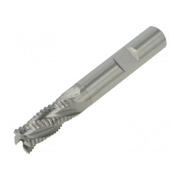 Frez szybkotnący palcowy o średnicy 10mm wykonany jest ze stali szybkotnącej kobaltowej HSS-E. Narzędzie wyposażone jest w cztery ząbkowane krawędzie tnące, co umożliwia realizację cięcia o charakterze zgrubno-wykańczającym. Konstrukcja dostosowana jest do mocowania w uchwycie typu Weldon o średnicy 10mm.