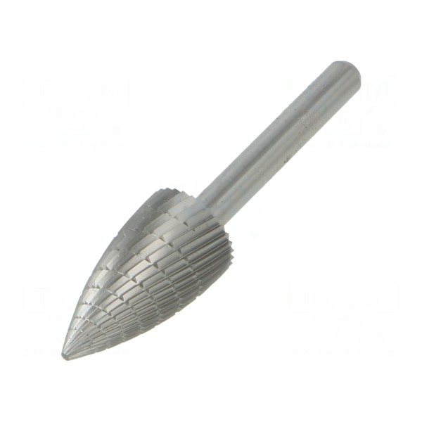 Frez szybkotnący o kształcie stożkowym wykonany jest ze stali szybkotnącej HSS. Narzędzie posiada średnicę końcówki wynoszącą 16mm oraz średnicę trzpienia 6mm, co pozwala na montaż w standardowych uchwytach narzędziowych.