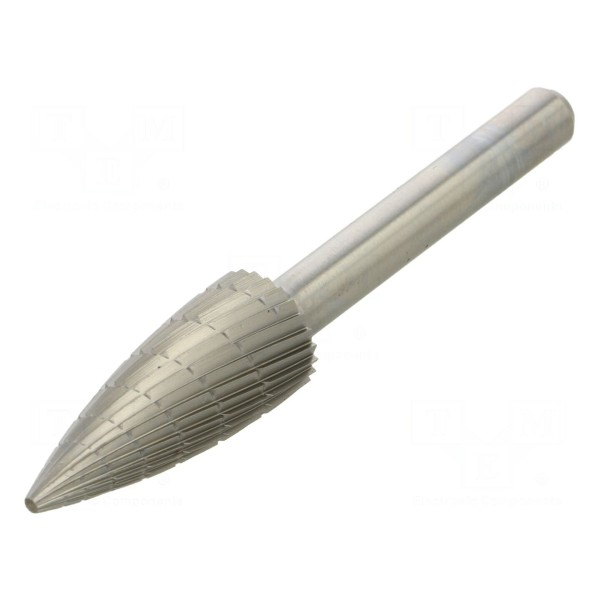 Frez szybkotnący wykonany ze stali szybkotnącej HSS charakteryzuje się stożkowym kształtem części roboczej o średnicy 12 mm oraz długości 30 mm. Całkowita długość elementu wynosi 70 mm, a średnica trzpienia montażowego to 6 mm.