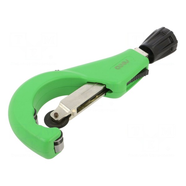 Konstrukcja narzędzia umożliwia precyzyjne prowadzenie cięcia, co zapewnia dopasowanie do wymiarów obrabianych rur. Narzędzie dedykowane jest do prac instalacyjnych wymagających cięcia przewodów z tworzyw sztucznych w podanym przedziale średnic.
