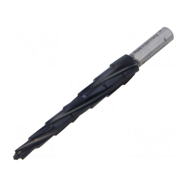 Wiertło stopniowe, stożkowe i wielostopniowe przeznaczone jest do wykonywania otworów o średnicach w zakresie od 6 do 12 mm. Narzędzie zostało wykonane ze stali szybkotnącej HSS pokrytej powłoką z azotku tytanu i TiALN, co wpływa na jego charakterystykę roboczą. Posiada 7 stopni oraz 3 krawędzie tnące, a jego całkowita długość wynosi 105 mm.