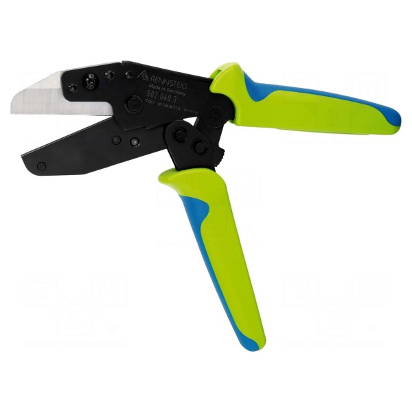 Nożyce przeznaczone są do cięcia korytek kablowych. Całkowita długość narzędzia wynosi 220mm, co pozwala na wygodną obsługę podczas prac montażowych.
