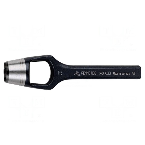 Przebijak RENNSTEIG przeznaczony jest do wykonywania otworów. Narzędzie charakteryzuje się średnicą trzpienia wynoszącą 33 mm oraz całkowitą długością 175 mm.