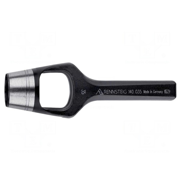 Przebijak marki RENNSTEIG przeznaczony jest do wykonywania otworów. Narzędzie charakteryzuje się średnicą trzpienia wynoszącą 35mm oraz całkowitą długością narzędzia 180mm.