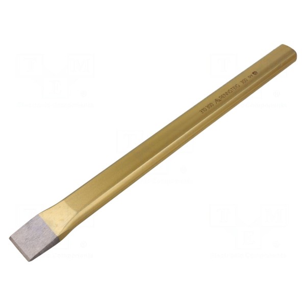 Przecinak płaski o szerokości końcówki 26 mm przeznaczony jest do prac obróbczych. Całkowita długość narzędzia wynosi 300 mm.