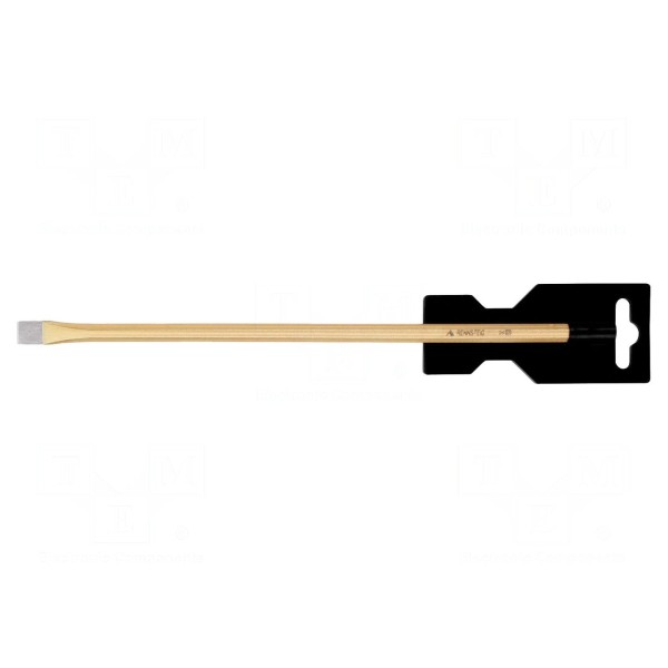 Przecinak płaski służy do obróbki materiałów twardych i kruchych. Szerokość końcówki narzędzia wynosi 12mm, natomiast jego całkowita długość to 250mm.