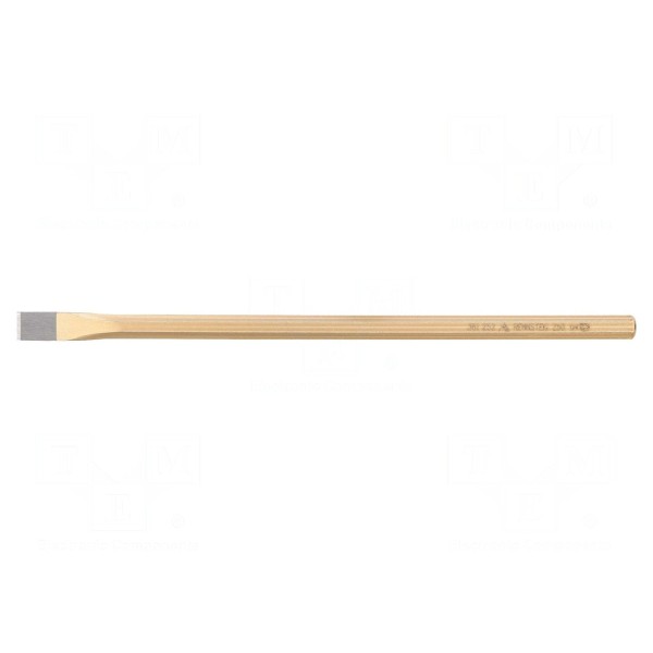 Przecinak płaski o długości całkowitej 250mm przeznaczony jest do prac obróbczych. Szerokość końcówki roboczej wynosi 12mm, co umożliwia precyzyjne punktowanie i cięcie materiału.