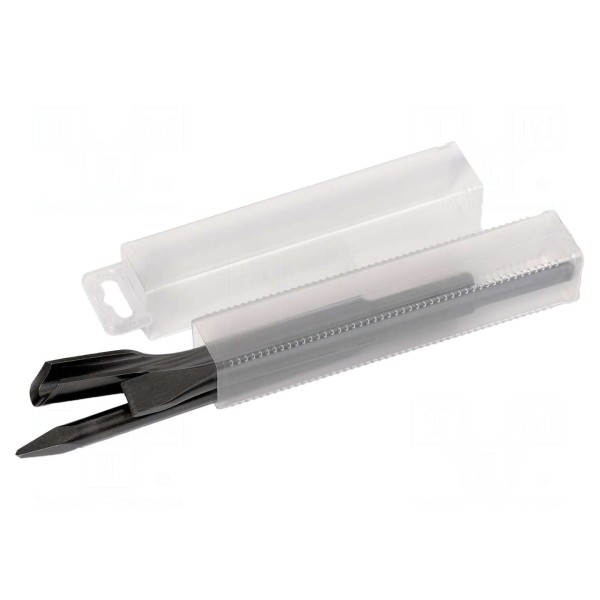 W zestawie znajdują się 3 sztuki narzędzi: dwa dłuta oraz szpicak do kucia. Zastosowanie uchwytu SDS-Plus pozwala na stabilne osadzenie w kompatybilnych młotowiertarkach.
