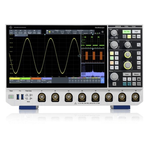 Cyfrowy oscyloskop ROHDE & SCHWARZ MXO38-500 oferuje 8 kanałów pomiarowych przy paśmie przenoszenia 500MHz. Urządzenie zapewnia próbkowanie na poziomie 2,5Gsps, które w trybie interleaved wzrasta do 5Gsps, przy długości rekordu pamięci wynoszącej 125Mpts. Rozdzielczość pionowa 12-bitowa oraz czas narastania poniżej 0,7ns umożliwiają precyzyjną analizę sygnałów. Impedancja wejściowa wynosi 1MΩ/12pF, a maksymalne napięcie wejściowe to 300V.
