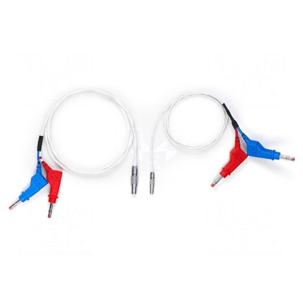 Produkt stanowią przewody pomiarowe o długości 1 metra, przeznaczone do wykonywania połączeń w systemach pomiarowych. Zestaw zawiera dwie sztuki kabli dostosowanych do standardowych zastosowań laboratoryjnych.