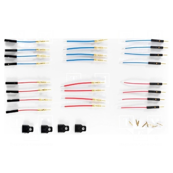 Produkt dostarcza niezbędnych przewodów umożliwiających połączenie sondy z badanym układem. Jest on dedykowany do pracy z urządzeniem obsługującym 4 kanały oraz napięcie wejściowe 15V.