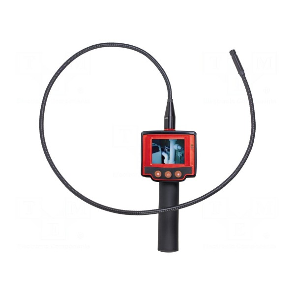Kamera inspekcyjna służy do wizualnej kontroli trudno dostępnych miejsc. Urządzenie wyposażono w głowicę o średnicy 10 mm oraz przewód o długości 0,9 m, a sama sonda posiada klasę szczelności IP67. Podgląd obrazu odbywa się za pomocą wyświetlacza LCD o przekątnej 2,4 cala i rozdzielczości 480x234 pikseli.