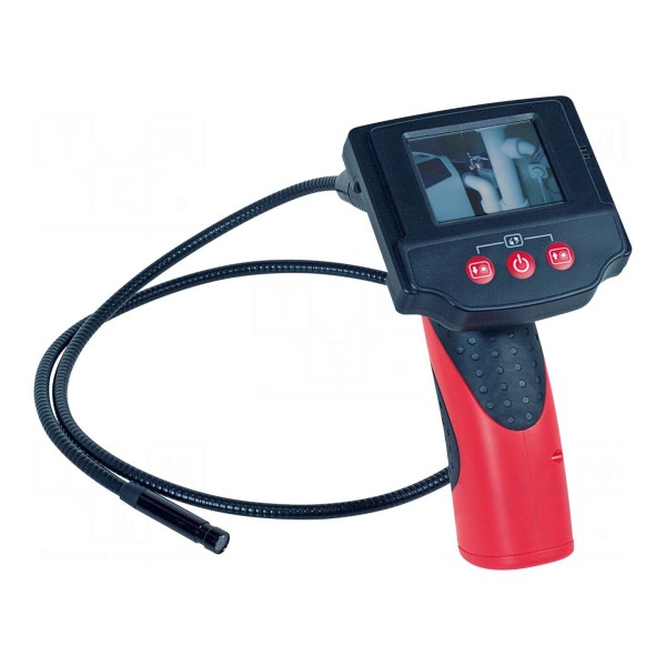 Przyrząd posiada wbudowaną diodę LED, która doświetla pole pomiarowe w miejscach o ograniczonym dostępie światła. Urządzenie oferuje wyjście wideo typu TV-Out w standardzie PAL, umożliwiając podłączenie zewnętrznego monitora. Przewód sondy o długości 1,8 m pozwala na sprawne manewrowanie wewnątrz instalacji czy kanałów technicznych.