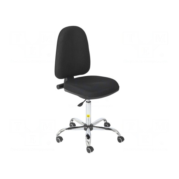 Krzesło antystatyczne zostało zaprojektowane do pracy w środowiskach wymagających ochrony przed wyładowaniami elektrostatycznymi. Wykonane z poliestru z dodatkiem włókna węglowego siedzisko o wymiarach 430x455mm oraz oparcie 500x440mm zapewniają skuteczne odprowadzanie ładunków z użytkownika do przewodzącej wykładziny lub maty ESD. Produkt charakteryzuje się rezystancją powierzchniową w zakresie 0,1–1MΩ oraz rezystancją względem ziemi od 1MΩ do 100MΩ.