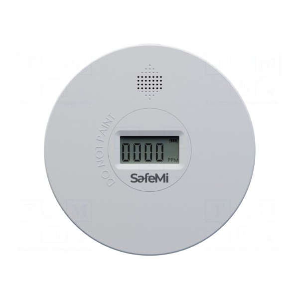 Czujnik SafeMi SHCS-10D pełni funkcję wykrywacza tlenku węgla oraz dymu. Urządzenie wykorzystuje sensor elektrochemiczny do monitorowania jakości powietrza w pomieszczeniach.
