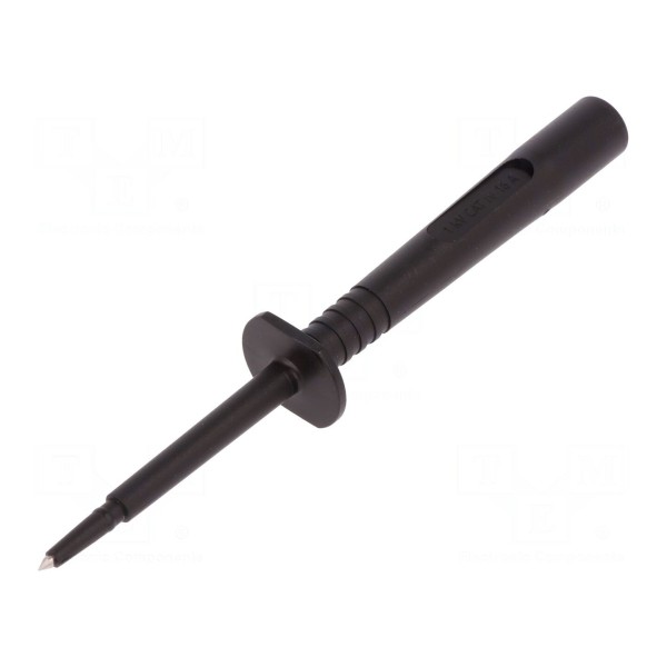 Korpus końcówki wykonano z poliamidu, co zapewnia izolację w warunkach pracy od -25°C do 80°C. Całkowita długość komponentu wynosi 133mm, a jego konstrukcja jest zgodna z normami bezpieczeństwa CAT IV 1000V oraz EN 61010. Element utrzymany jest w kolorze czarnym.