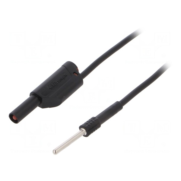 Przewód pomiarowy o przekroju 1mm² został wyposażony w wtyk bananowy 4mm oraz wtyk bananowy z gniazdem osiowym 4mm. Element przystosowany jest do pracy z prądem znamionowym o natężeniu do 19A. Konstrukcja charakteryzuje się maksymalną rezystancją styku na poziomie 3mΩ oraz zastosowaniem srebrzonego pokrycia styków.
