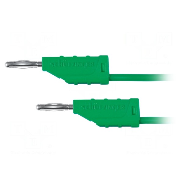 Przewód pomiarowy w kolorze zielonym przeznaczony jest do wykonywania połączeń w układach elektronicznych i laboratoryjnych. Wyposażony jest po obu stronach w nieizolowane wtyki bananowe o średnicy 2 mm, które posiadają zintegrowane gniazda osiowe 2 mm. Długość przewodu wynosi 0,25 m, a jego przekrój poprzeczny to 0,5 mm².