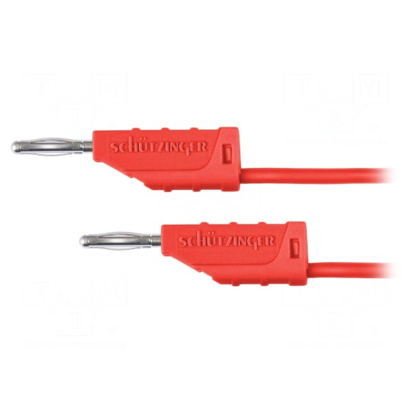 Przewód pomiarowy SCHÜTZINGER MFK 11 / 0.5 / 50 / RT to element o długości 0,5 m wyposażony po obu stronach we wtyki bananowe o średnicy 2 mm. Konstrukcja złączy typu nieizolowanego posiada dodatkowe gniazdo osiowe 2 mm. Przewód o przekroju 0,5 mm² został wykonany z izolacją z PVC w kolorze czerwonym.