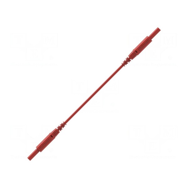 Akcesorium charakteryzuje się prądem znamionowym wynoszącym 10 A oraz zakresem temperatury pracy od -10 do 90°C. Produkt jest zgodny z normą EN 61010 oraz spełnia wymogi bezpieczeństwa kategorii CAT III 600 V. Przewód występuje w kolorze czerwonym.