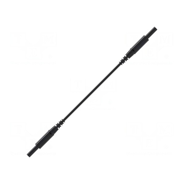Przewód pomiarowy SCHÜTZINGER MSFK A301 / 0.5 / 50 / SW o długości 0,5 m został wyposażony w wtyki bananowe o średnicy 2 mm umieszczone po obu stronach. Konstrukcja bazuje na przewodzie o przekroju 0,5 mm² z izolacją wykonaną z PVC, co zapewnia wytrzymałość w temperaturach pracy od -10°C do 90°C.