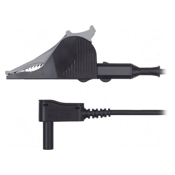 Budowa akcesorium obejmuje dwa kątowe wtyki bananowe 4mm oraz zacisk krokodylkowy. Zastosowane komponenty są zgodne z normą EN 61010 oraz wymogami kategorii bezpieczeństwa CAT III 1000V. Przewód w kolorze czarnym przeznaczony jest do wykorzystania w zaawansowanych układach pomiarowych.