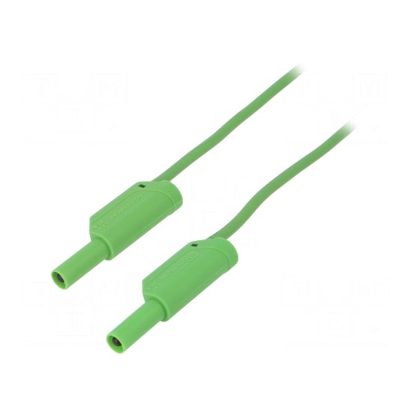 Przewód pomiarowy o długości 1,5 m wyposażony jest obustronnie we wtyki bananowe 4 mm z gniazdem osiowym oraz osłoną. Konstrukcja bazuje na przewodzie o przekroju 2,5 mm² w izolacji wykonanej z PVC. Elementy stykowe poddano niklowaniu, co zapewnia maksymalną rezystancję styku na poziomie 25 mΩ.