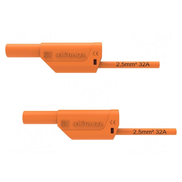 Przewód pomiarowy SCHÜTZINGER VSFK 8500 / 2.5 / 200 / OR o długości 2 metrów został wyposażony w wtyki bananowe o średnicy 4 mm po obu stronach. Konstrukcja złączy jest izolowana i posiada dodatkowe gniazda osiowe 4 mm. Produkt charakteryzuje się prądem znamionowym 32 A oraz napięciem znamionowym 1 kV. Przekrój przewodu wynosi 2,5 mm², a zastosowana izolacja wykonana jest z PVC.