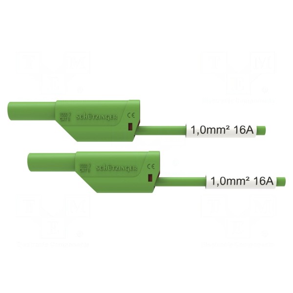 Element ten jest przystosowany do pracy przy napięciu znamionowym 1kV oraz prądzie znamionowym 16A. Produkt spełnia wymagania normy EN 61010 oraz wymogi kategorii bezpieczeństwa CAT III 1000V. Przewód w kolorze zielonym przeznaczony jest do wykonywania połączeń w układach pomiarowych.