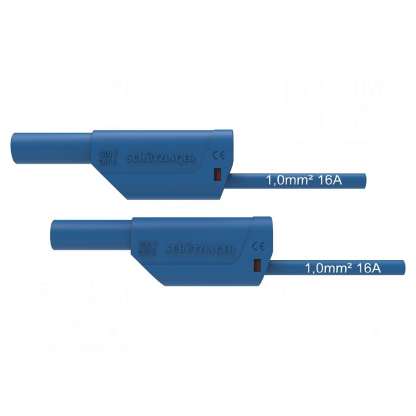 Przewód pomiarowy SCHÜTZINGER o długości 1m charakteryzuje się prądem znamionowym 16A oraz napięciem znamionowym 1kV. Przekrój przewodu wynosi 1mm², a jego izolację wykonano z trwałego materiału PVC. Złącza zostały wyposażone w izolowane wtyki bananowe 4mm z gniazdem osiowym po obu stronach.