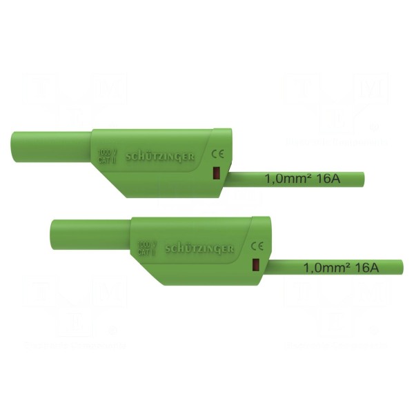 Przewód pomiarowy SCHÜTZINGER VSFK 8501 / 1 / 150 / GN o długości 1,5 m został zaprojektowany do prac z napięciem znamionowym do 1 kV. Konstrukcja bazuje na przewodzie o przekroju 1 mm² w izolacji z PVC, zakończonym po obu stronach wtykami bananowymi 4 mm. Złącza wyposażone są w izolację oraz gniazdo osiowe 4 mm, co zwiększa elastyczność połączeń w układach pomiarowych.