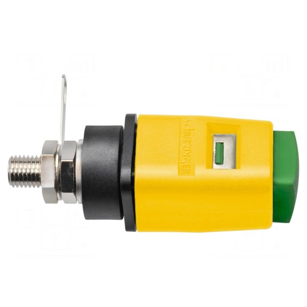 Zacisk laboratoryjny 16A, 70V DC / 33V AC, żółto-zielony