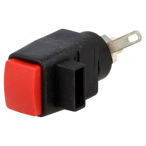 Zacisk laboratoryjny typu SDK 5230 / RT przeznaczony jest do instalacji w układach elektrycznych o napięciu znamionowym do 60V DC i natężeniu prądu do 16A. Element charakteryzuje się czerwoną obudową wykonaną z poliamidu, która zapewnia izolację oraz wytrzymałość w zakresie temperatur pracy od -25°C do 90°C.