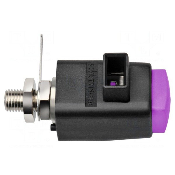 Zacisk laboratoryjny SCHÜTZINGER SDK 801 / VI w kolorze purpurowym przeznaczony jest do pracy przy napięciu znamionowym 300V DC oraz prądzie znamionowym 16A. Złącze charakteryzuje się zakresem temperatury pracy od -25°C do 90°C.