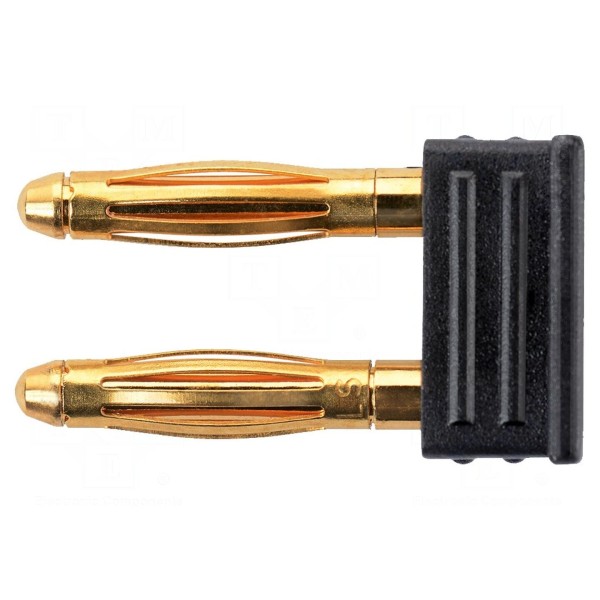 Złącze laboratoryjne typu mostek zwierny wyposażone jest w dwa wtyki bananowe o średnicy 2 mm. Element ten charakteryzuje się prądem znamionowym wynoszącym 12 A oraz napięciem znamionowym 30 V AC i 60 V DC. Konstrukcja złącza zapewnia rozstaw wtyków na poziomie 5,08 mm.