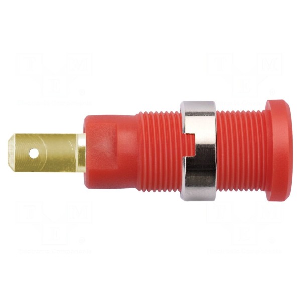 Gniazdo bananowe 2mm, 10A, montaż panelowy, kolor czerwony