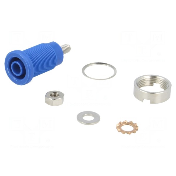 Gniazdo bananowe 4mm 32A, montaż panelowy, kolor niebieski