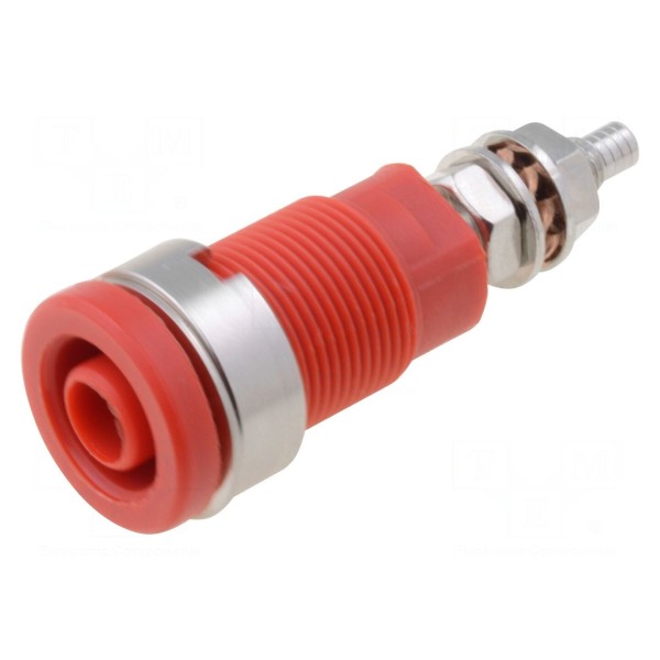 Gniazdo bananowe 4mm, 1kV, 32A, montaż panelowy, czerwone